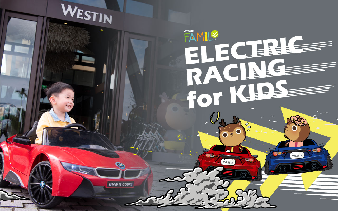 Electric Racing! 我要當小小賽車手! 宜蘭力麗威斯汀即日起提供8歲以下孩童開著兒童電動車暢遊威斯汀,在飯店內輕鬆享受開賽車的樂趣。於B1休閒中心櫃檯登記後即可選一輛自己喜愛的跑車,爸媽握著遙控器,孩子握著方向盤,讓您輕鬆駕馭小賽車!