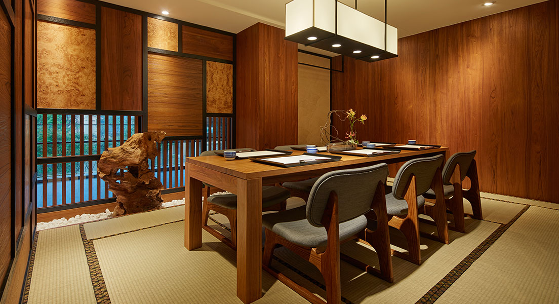会席料理は17世紀の江戸時代に源を発しています。当時、武士が客人を迎える際に用いた料理であり、語り合い詩をたしなむ風雅な集まりで、美食と美酒を組み合わせて「会席」のユニークな客人との宴の料理へと進化していきました。シェフチームは日本料理の「五色、五味、五法、五感」の原則を用いて、黒、白、黄、赤、緑などのそれぞれの種類の色の食材で、生、煮る、焼く、揚げる、蒸すの5種類の調理方法で、目にも心にも楽しい美味しいお料理へと調理します。さらに国際的な利き酒師がホテルに駐在し、お客様のためにオリジナルの味わいそのままの料理の特色をお届けいたします。シェフが心を込めて準備した、洗練されたお料理を味わえば、美食と芸術が織りなす饗宴をお楽しみいただけます。