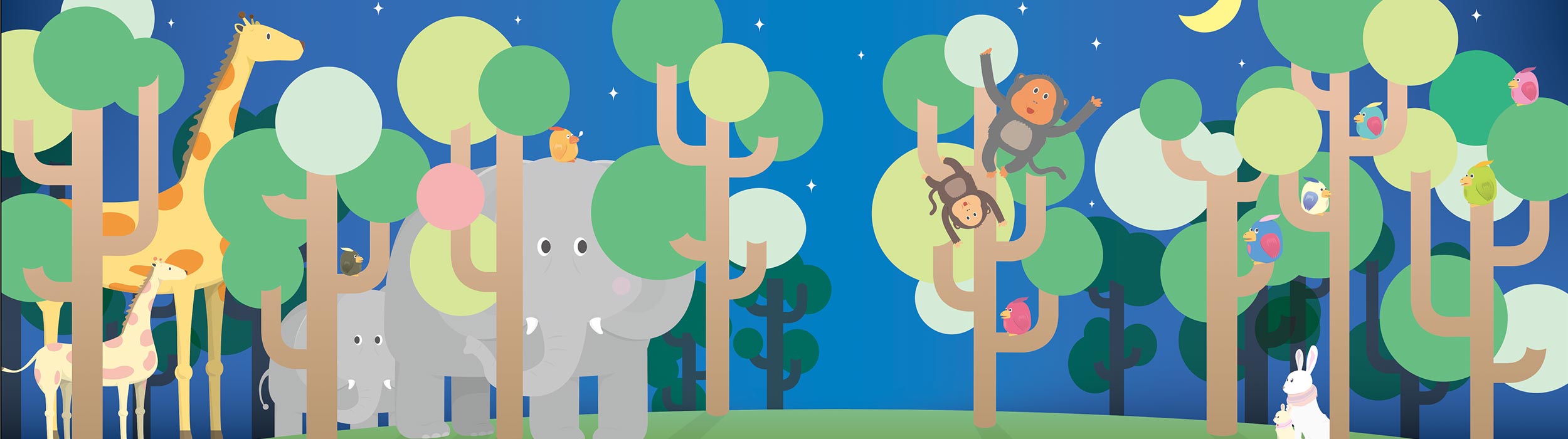 야반의 숲이 불안해 보인다, 색상이 다양한 새와 동물들이 소리를 지르고 있다. 아~ 사실은 오늘밤에 어느 탐험가가 달빛 축제에 참여하는지 의론 하는중이다. 동물 숲속 나무에 컬러 카디널이 몇 마리가 있는지 함께 세 보세요~