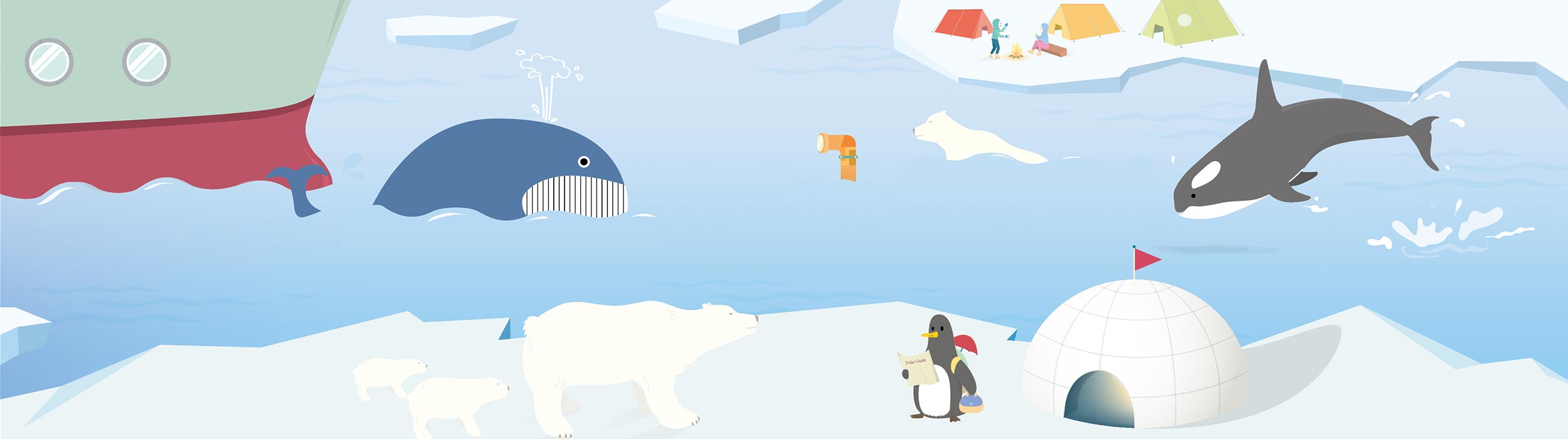 설계개념: 인물화의 동물역할로 어린이들에게 남극과 북극의 대표적 생물을 알게 하고, 지구보호의 이념을 전해 준다.