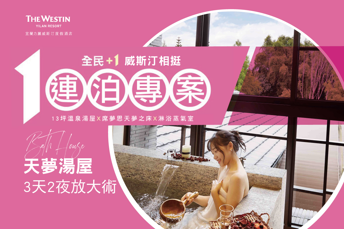 宜蘭力麗威斯汀度假酒店特別推出「天夢湯屋夜貓住房專案」,專為夜間八點後入住的旅客量身打造。每間湯屋精心配置品牌標誌性的 Heavenly® Bed 天夢之床 與 白茶蘆薈系列沐浴用品,讓您沉浸於極致的舒適與放鬆體驗。房內更備有獨立湯池,邀您細品宜蘭著名的「美人湯」,釋放身心壓力。